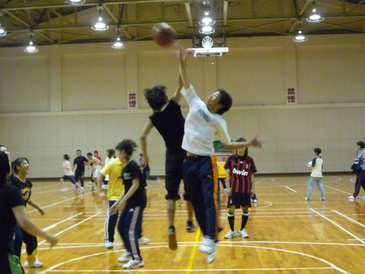 チームは4つに分けられて、ドッチボール、バスケ、バレーをしました。